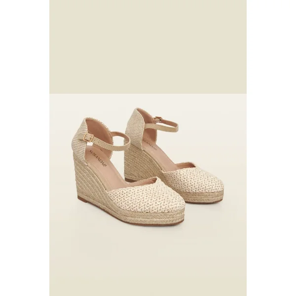 - Product composition: Upper 100% Raffia | Lining: 100% Polyurethane | Sock: 100% Polyurethane | Sole: 100% Rubber