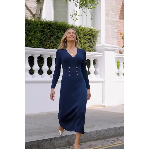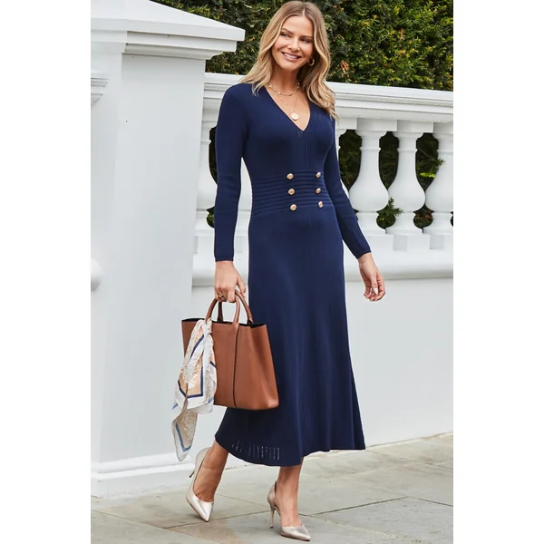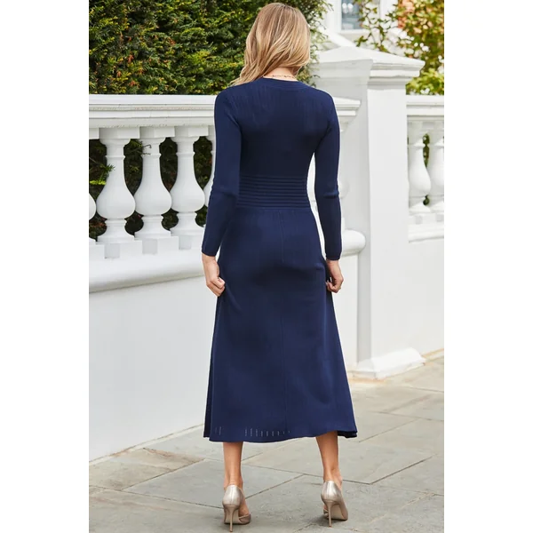 Be the first to review “Navy Blue Knitted Button Detail Fit & Flare Midaxi Dress”