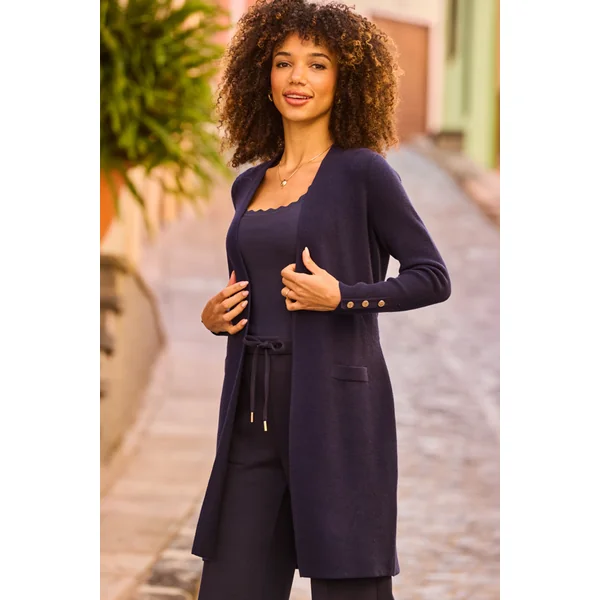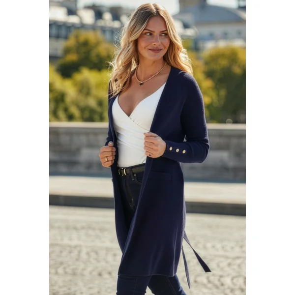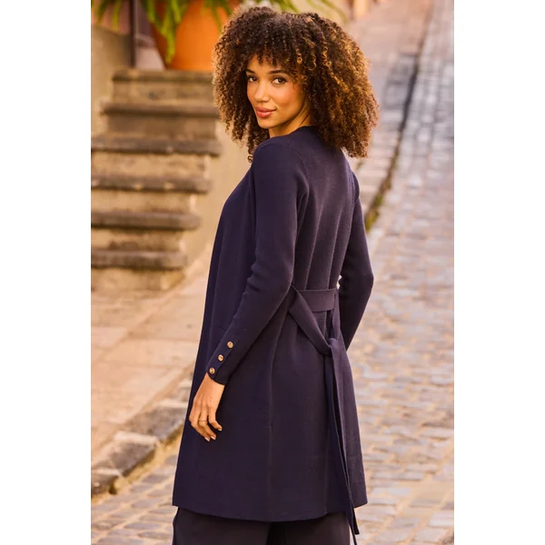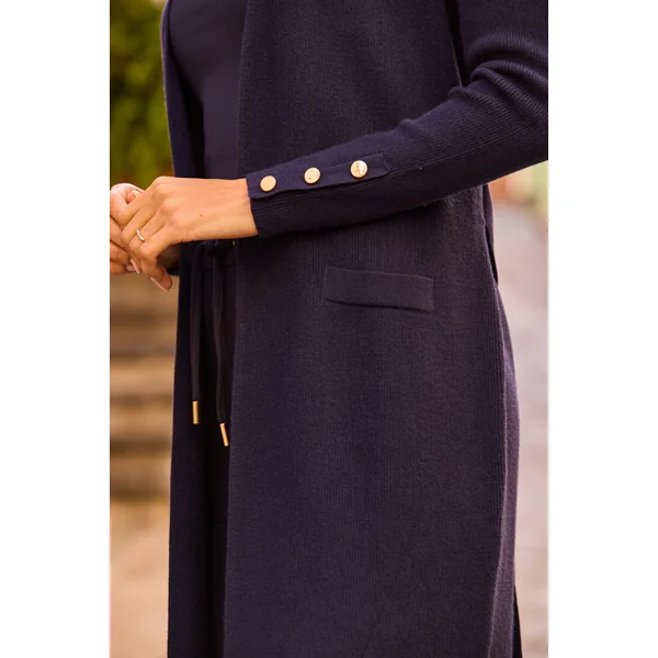 Be the first to review “Navy Blue Longline Belted Cardigan With Gold Button Detail”
