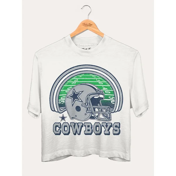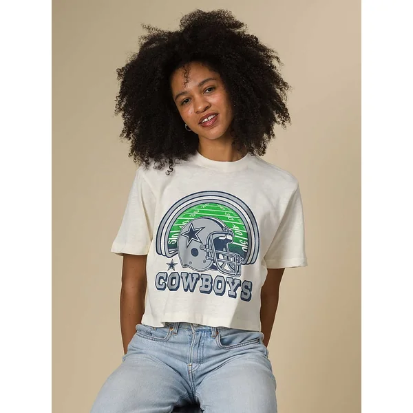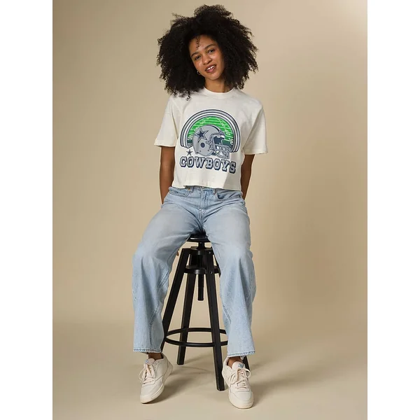 Deliver fierce game day style with a retro twist in this boxy cotton Tee that features a bold New York Jets graphic, an effortless cropped fit, and a classic mock neckband.