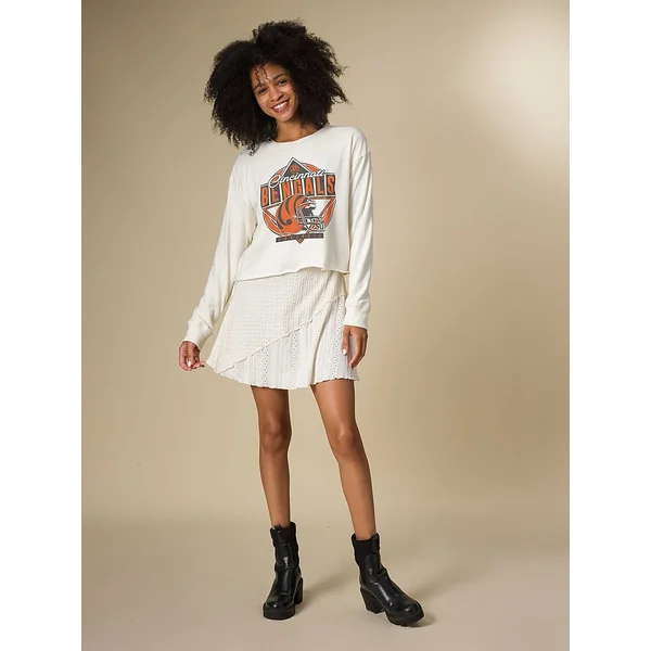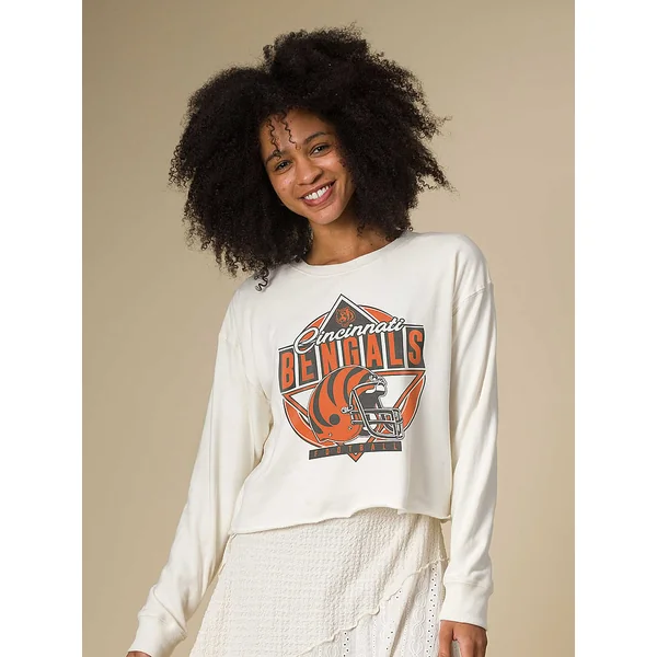 Rock authentic, retro vibes on game day with this vintage-inspired Fleece. Featuring a nostalgic helmet graphic on supersoft French terry fabric, plus a cropped silhouette with a raw-cut hem, this cozy layer brings bold team pride with a stylish edge. Perfect for cooler days when your Eagles spirit needs to shine.