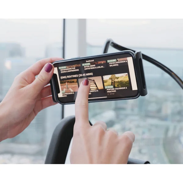 Handmade in Germany: highest quality, solid wood frame and bars render a beautiful, natural feel; exercise mat made of artificial leather.[/vc_column_text][/vc_column][vc_column width=”1/2″][vc_single_image image=”53525″ img_size=”large” alignment=”center”][vc_column_text]App