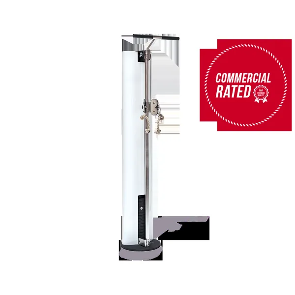 Measuring 215cm high and 40cm wide, the cable machine fits perfectly into all interiors. The SlimBeam is fixed at 10cm from your wall and protrudes a mere 20cm total into the room. Its base measures less than ¼ square meter.