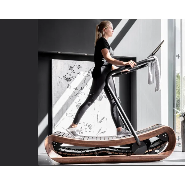 The curved manual treadmill offers users all advantages of a self-determined running or cardio workout: the belt, consisting of flexible wooden slats and precision ball bearing engineering is exclusively powered by the user’s legs. The Sprintbok knows no speed limits nor does it require settings. Infinitely variable from a comfortable walk to an all-out sprint, runners can fully determine their pace according to their personal running capacity.