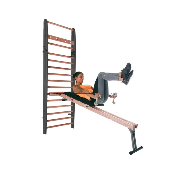 The WallBars bench is a workout bench and back support in one. By hanging the bench into various rungs, you will expand your exercise routine. Simply store this sleek accessory directly onto the WallBars, post workout.