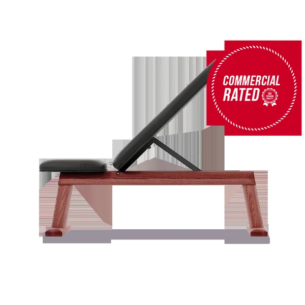 The wooded WeightBench is suitable for users of all fitness levels. With an easily adjusted backrest, our workout bench enables the full range incline and flat bench exercises. An adjustable front-raised seat position guarantees a firm hold during your bench workout.
