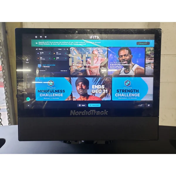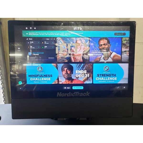 Pivoting 16″ (40.6 cm) touchscreen for off-equipment workouts