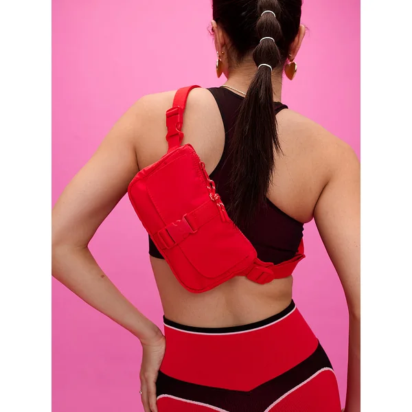 Finished with buckle details and a soft-and-fleecy fabric, this convenient cutie has external and internal pockets for all your stuff.