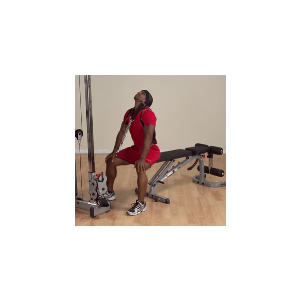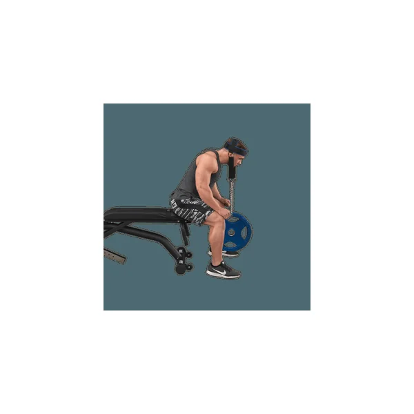 Recommended for all athletes and specifically designed for those in contact sports, head harnesses condition the neck and upper back muscles. Features include the finest quality materials, extra-heavy D rings and steel chain. Completely padded with high density neoprene to absorb shock and prevent cuts, chafing and abrasion. Use them with free weights or hook them to a high or low pulley on a machine.