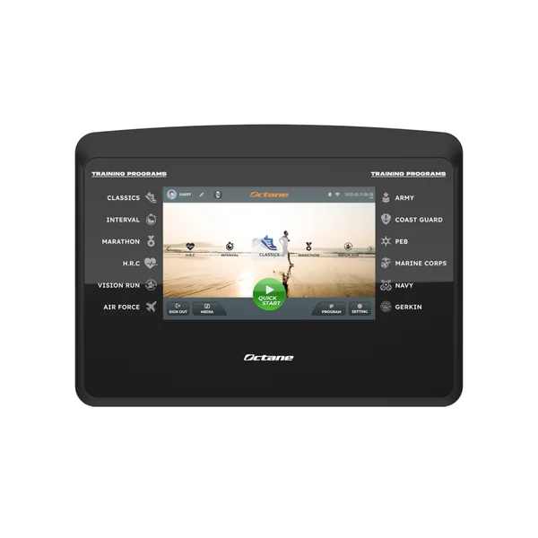 [vc_row][vc_column width=”1/2″][vc_custom_heading text=”FEATURES” font_container=”tag:h2|font_size:45|text_align:left|color:%23441265″ use_theme_fonts=”yes”][vc_column_text]Octane OC100 Treadmill Key Features