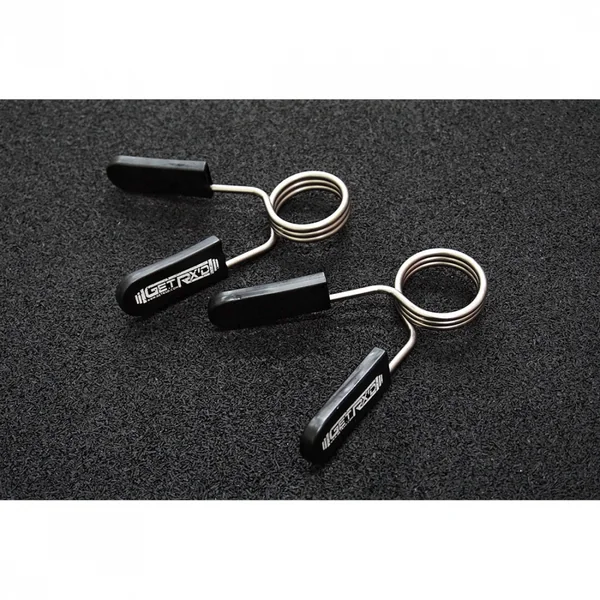 Spring collars keep plates from slipping off the bar during lifting sessions and are especially useful for high-intensity movements when weights tend to slide. Get RX’d spring collars feature plastic handles that make it easier to firmly grip when securing plates on the barbell and removing the clamps from the bar. The plastic ends also provide rust resistance to the collars. Fits standard Olympic barbells.