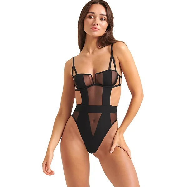 In or out of the bedroom, make a statement in a graphic teddy featuring strappy cutouts and sheer mesh panels. Style with your favorite blazer and jeans for the perfect high-low mix.