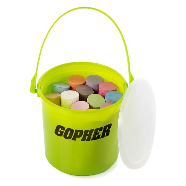 Large, 4”L chalk is easy to hold and long-lasting. Students and teachers will love these for drawing on sidewalks or creating games. An included bucket makes carrying the chalk simple and offers convenient storage. Available as an individual bucket with 12 pieces of chalk in pastel colors or in a Class Set of 12 buckets with chalk. Each bucket is 3-1/2”L x 2-1/4”W x 2-1/4”H; 1-3/4 lb.