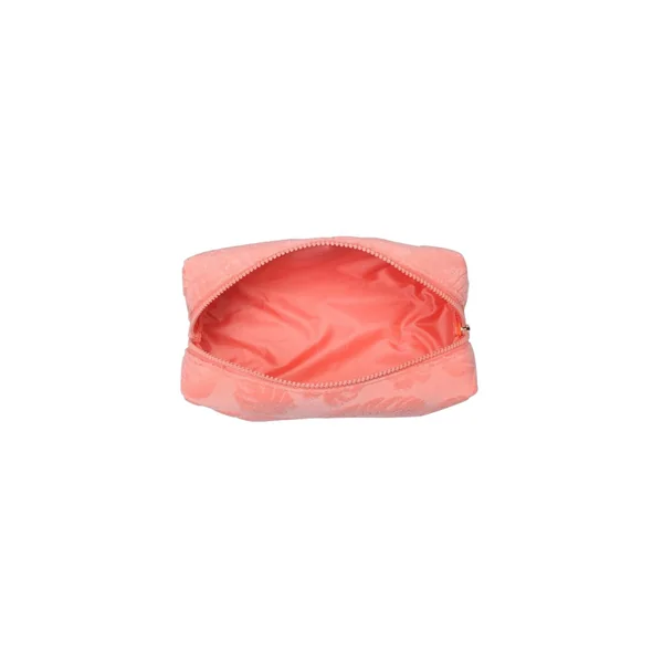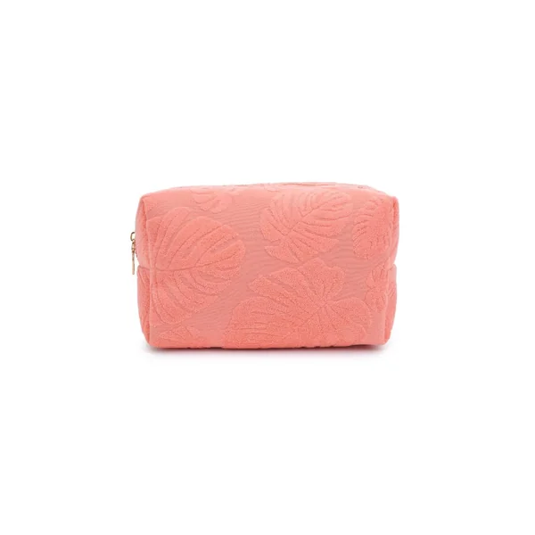 Pouch features textured terry cloth with intricate leaf patterns, lightweight yet durable, perfect for storing daily essentials. Offers a secure zipper closure.