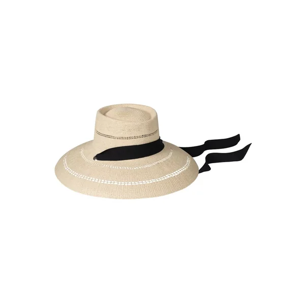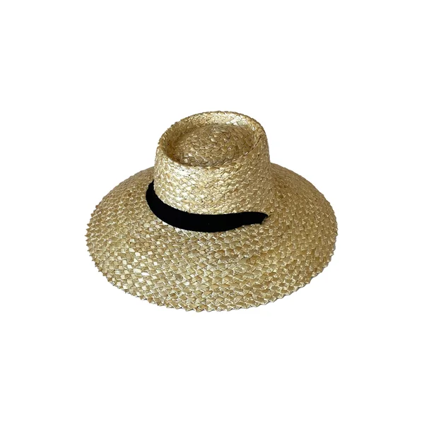 Paloma sun hat features a handwoven design with two rows of open lattice stitching on the brim and removable necktie.