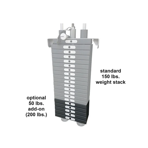 – Increase the Solid Steel Weight Stack from the standard 150 lbs. to 200 lbs.