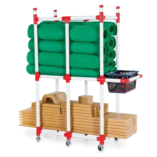 An ABS storage cart neatly houses and hauls the entire Par’Putt Miniature Golf Set, complete with 6 locking swivel caster wheels for rapid loading and unloading. Easily push the cart to and from storage, making quick work of transporting your mini-golf equipment. Cart is 56″L x 14″W x 21″H, 36 lb