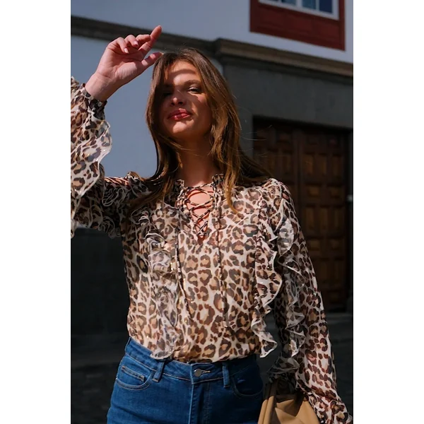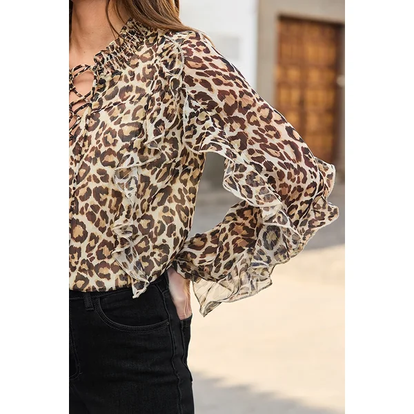 Be the first to review “Petite Leopard Print Lace Up Blouse”