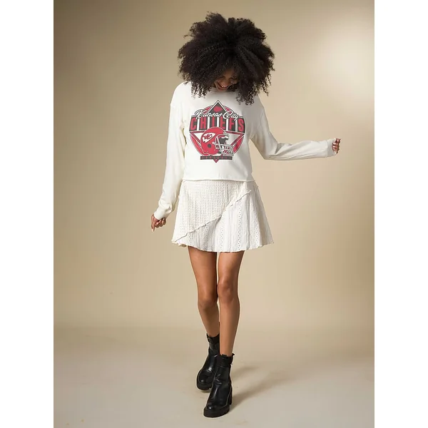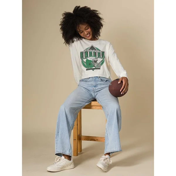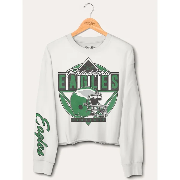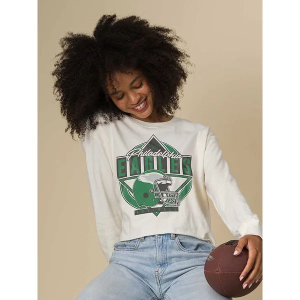 Rock authentic, retro vibes on game day with this vintage-inspired Fleece. Featuring a nostalgic helmet graphic on supersoft French terry fabric, plus a cropped silhouette with a raw-cut hem, this cozy layer brings bold team pride with a stylish edge. Perfect for cooler days when your Eagles spirit needs to shine.