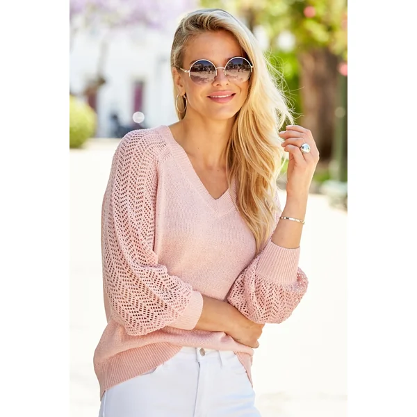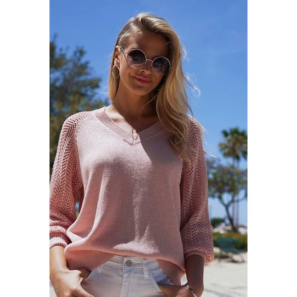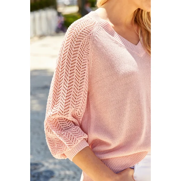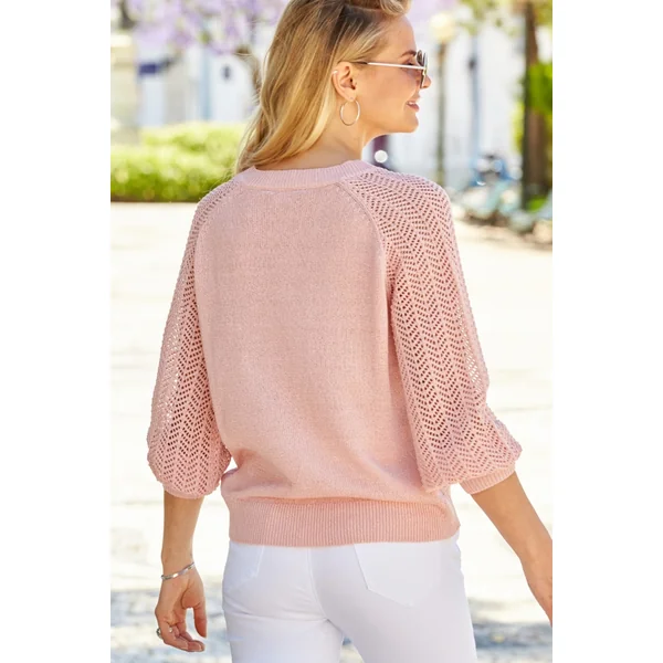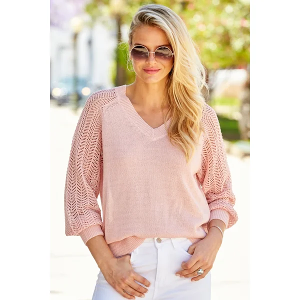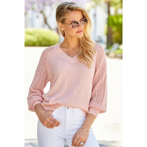 Be the first to review “Pink Pointelle Sleeve V Neck Jumper”
