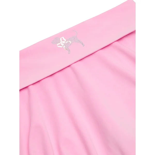 • Diamante PINK dog detail with foil shine bow at back waistband