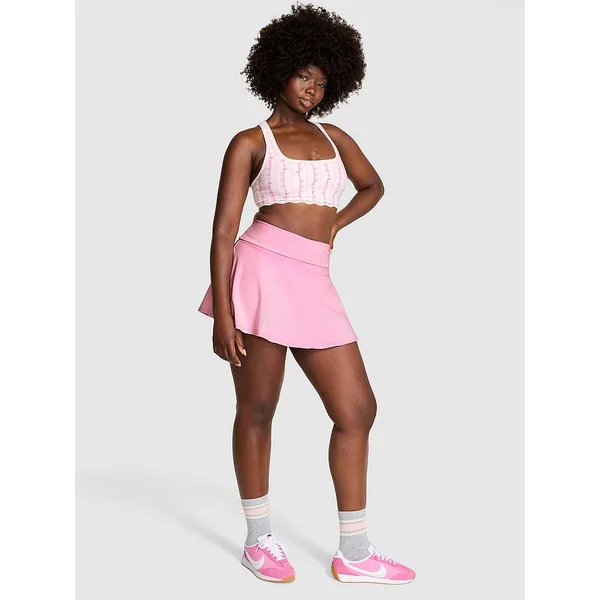 All kinds of flirty, flouncy, and fun, this Skirt also has built-in Shorts—need we say more? There’s also a foldover waistband with eye-catching diamante details. It looks super cute with the PINK x LoveShackFancy Retro Cotton Tee, just sayin’.