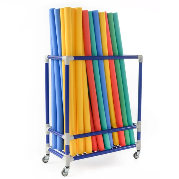 Are your pool noodles in a jumble? Organize them in this cart that holds up to 60 noodles and contains them for simple accessibility. Sturdy ABS construction ensures longevity in institutional settings. Four 3″ steel locking casters allow easy transportation between the pool and storage for quick activity setup. Cart requires assembly and is 38″L x 19″W x 50″H; 28 lb.