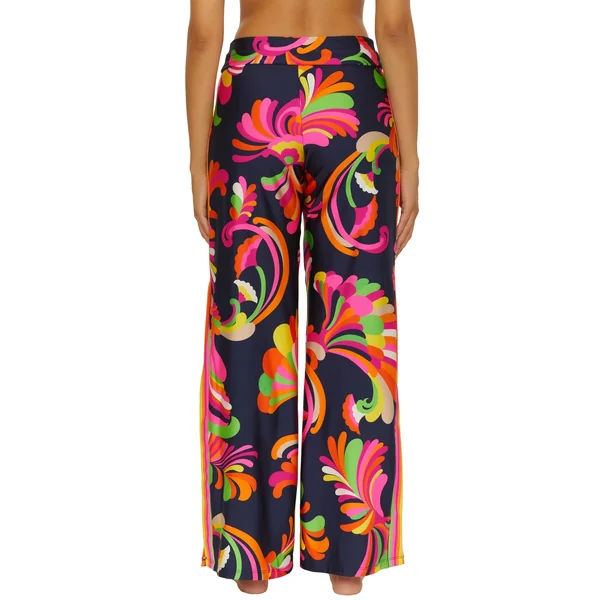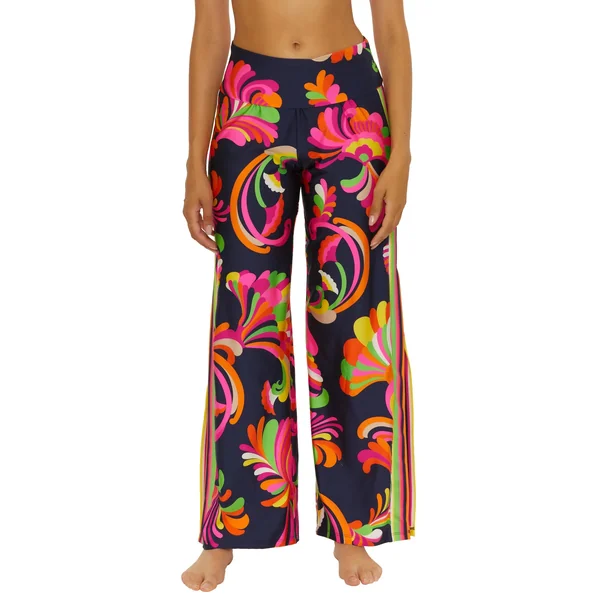 Pants feature floral print, stripes down the sides, and offer a wide banded elastic waist.