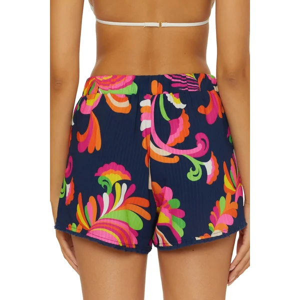 Shorts offer an elastic waistband, pockets, relaxed fit and tassel trim along the hem.