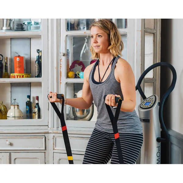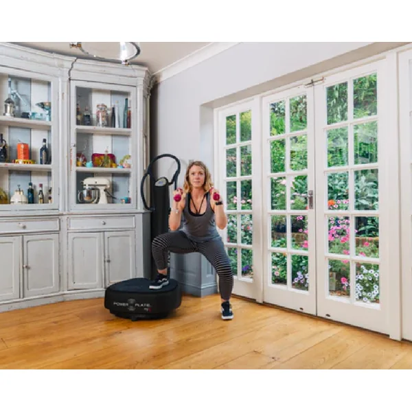 Power Plate vibrates up to 50 times a second sending tiny vibrations through your body. These tiny micro vibrations activate more muscles, burn more calories, improve circulation, and assist muscle recovery.