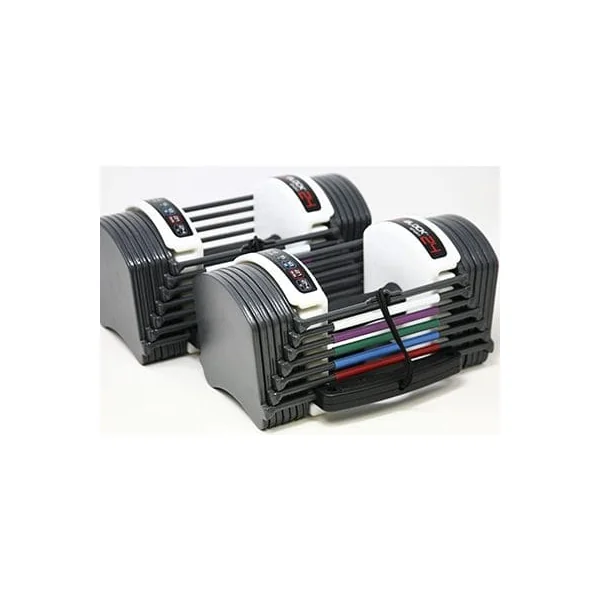 The Powerblock 2.4 Set allow you to set the weight from 3-24 pounds in 3 pound increments.