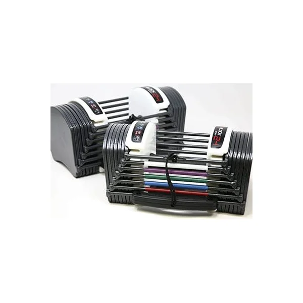 You can fill a room with racks and racks of dumbbells, or get the same amount of weight in a 2’x2′ area at a fraction of the cost with a set of Powerblocks!!  Powerblock dumbbell sets come in several sizes, allowing you to choose the weight that is right for you.  Powerblcok Sport Series dumbbells have a painted steel finish on the plates.