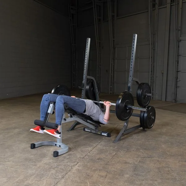 Powerline PMP150 Multi-Press Rack is the perfect partner for users wanting to perform quality barbell movements with total safety. Significantly shorter than full cage power racks and half racks, the PMP150 does not compromise quality. This rack is built with a heavy-duty 2”x2” steel mainframe and can handle up to 600 lbs. The 7-degree reverse pitch accommodates natural lifting paths for biomechanically correct workouts. The PMP150 includes adjustable lift offs and over-sized safeties for peace of mind as well as Olympic weight storage posts for quick and easy access to your weights. Users can perform squats, shoulder presses, bench presses and more in the comfort of a stable and sturdy press rack.