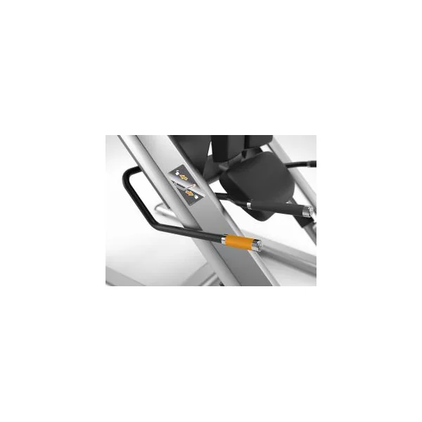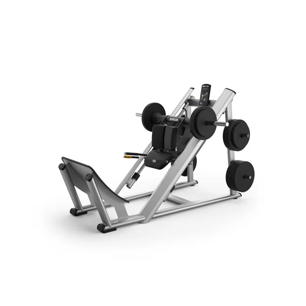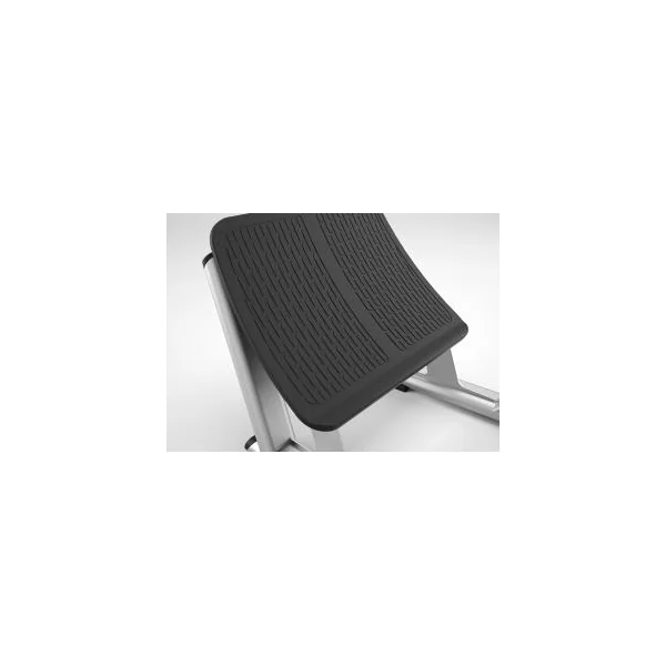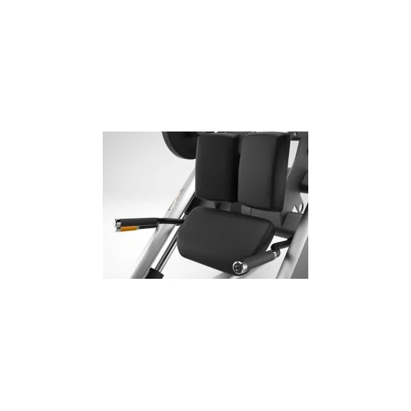 The unique design of the Discovery Series Plate Loaded Hack Squat eliminates loading of the shoulders and the resultant compression of the spine. The intuitive seat design places the user in a more natural and comfortable upright position. The load is placed directly on the hips where it is better stabalized and recruits more of the targeted muscles of the lower body. Easy entry and exit access and the oversized, curved, non-slip foot platform provide a secure platform that includes a built in calf raise lip.