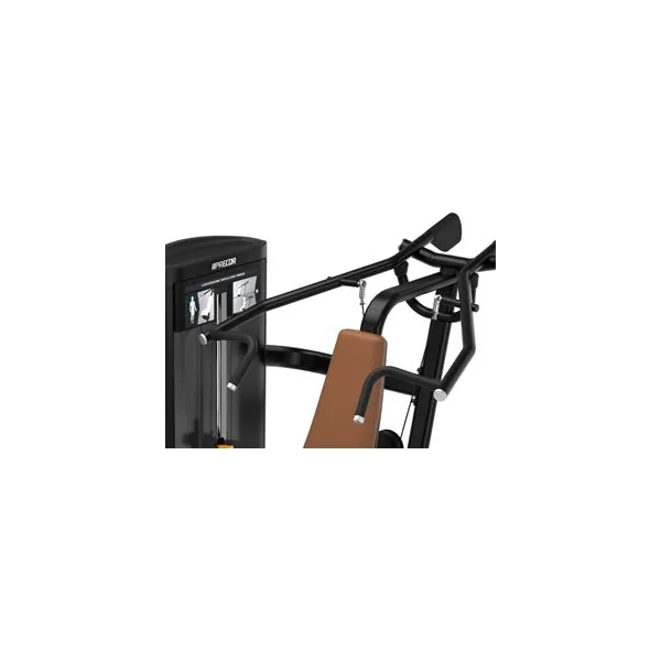 The Resolute™ Strength Converging Shoulder Press emphasizes proper biomechanics with an ergonomic, converging axis and independent pressing arm movement. The dual-position handles add to exerciser’s comfort and workout variety. The low-profile tower of the Shoulder Press lends an open, spacious feel, even in smaller facilities.