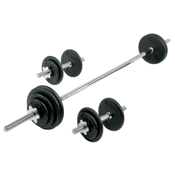 The Pro Cast Iron Dumbbell / Barbell Spinlock Set is a 1” Standard Plate and Bar Set. This set features the ability to build your own dumbbells with 14” dumbbell handles and several options of weight plates. The 6’ standard barbell can be utilized to do basic training exercises with moderate weight. Change and secure your plates with the easy to use spin lock collars. Save time, space, and money with this easy to use spinlock set. This is a great set for those who are new to weightlifting or for those who want to have versatility without a lot of equipment.