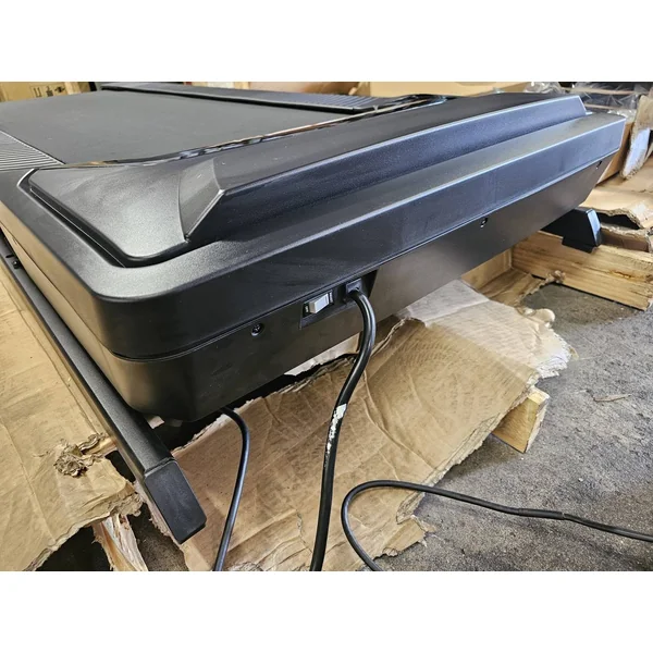 Easily fold the treadmill to maximize your room’s space. When you’re ready to work out, press the black bar with your foot and the treadmill will lower to the floor on its own.