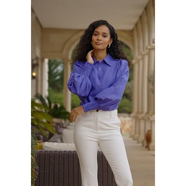 Be the first to review “Purple Linen Blend Blouson Sleeve Shirt”