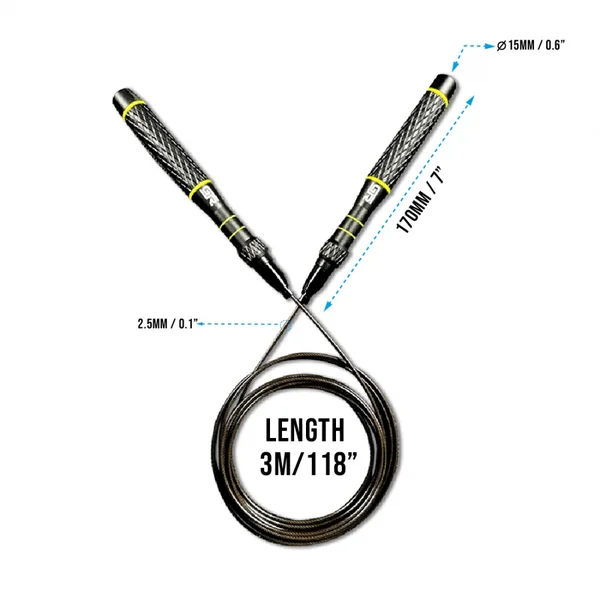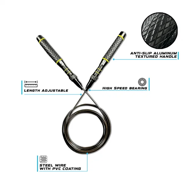 The QA-1 Speed Rope is designed with a lightweight, aluminum handle that tapers where you want to feel the control. The handle weighs only 0.22 LBs plus a lightning quick 118″ x 0.1″ cable that brings the total weight to 0.31LBs. We’ve added knurling to the key areas of the tapered, aluminum handle to give you a secure grip while maintaining a comfortable feel.