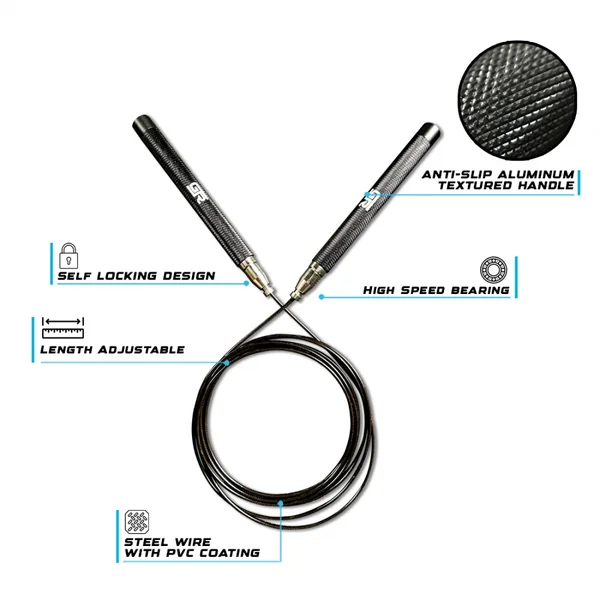 The Quick Adjust QA-2 Speed Rope features a self-locking and unlocking design that makes cable adjustment a breeze, without the use of any tools. Simply press the top of the handle with your finger to shorten or lengthen the cable, then release the top so that the self-locking mechanism secures the cable at the desired length. This easy-to-use feature makes it a top choice for gyms and home gyms that might have multiple users sharing the same speed rope.