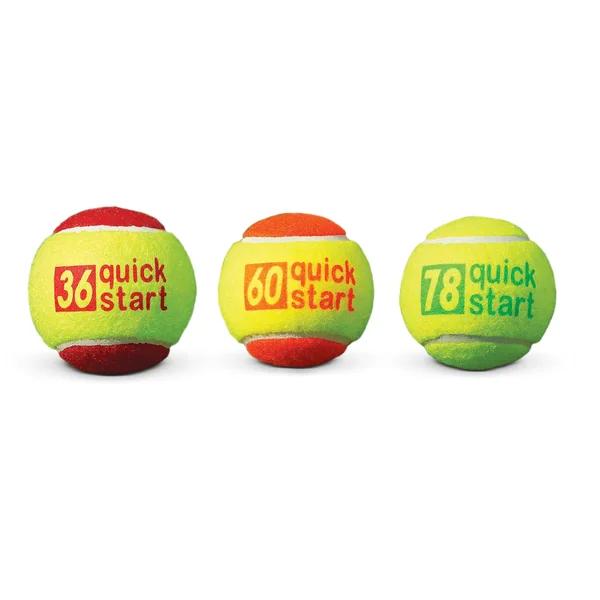 QuickStart tennis balls quickly introduce students to the game in a non-intimidating way, then slowly build them up to proficiency via incremental changes in ball size and density. Have your students work through three tiers of QuickStart balls before picking up a regulation ball! Each tier is color-coded and clearly marked so its easy for students to identify personalized equipment in seconds and reduce time spent setting up.