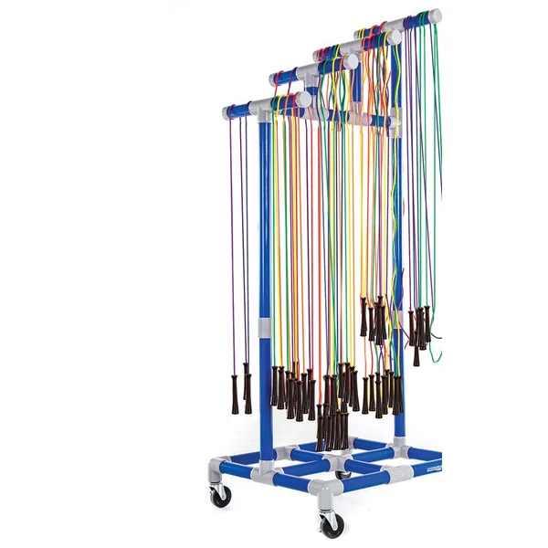 Rainbow Rack Pack includes 30 jump ropes (1 set ea 6′-16’L) and a Magnus Jump Rope Rack.