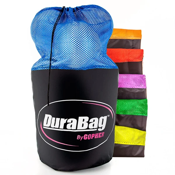 Quickly and conveniently carry a wide variety of balls to and from activity areas with these resilient and accommodating small and large mesh storage bags. Bright Rainbow colors make organization and identification of equipment easy so you can spend more time on activities and less time setting up. This is our most affordable DuraBag!