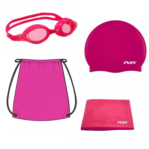 Bundle includes: Silicone Swim Cap, Swimming Goggles, Drawstring Bag and Microfibre Towel.
