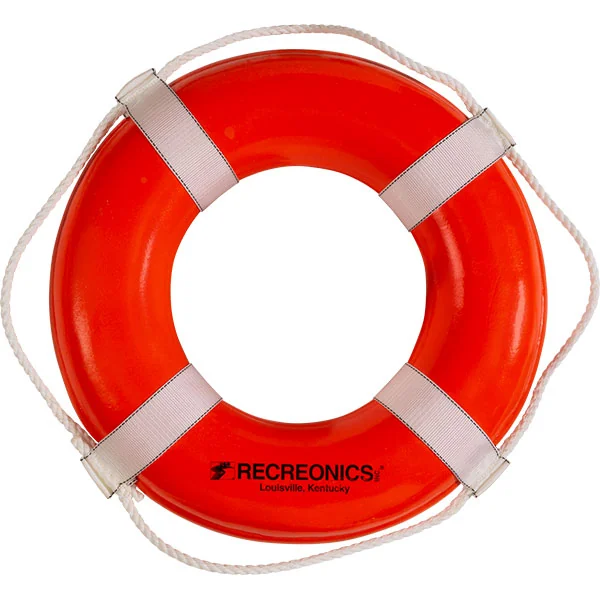 Manufactured under the strict codes of the United States Coast Guard, Recreonics ring buoys are classified as U.S. Coast Guard Approved, PFD Type IV.