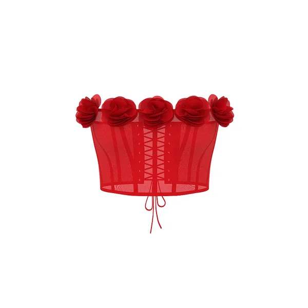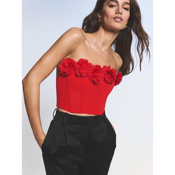 Going somewhere? Celebrate the season with this bold-and-sexy statement piece. Riveting in red, this strapless Corset Top blooms brightly with a row of fluttery chiffon roses along the neckline. In back, a sexy lace-up closure lets you cinch the style for customized-fit perfection, while a hidden zipper makes for easy on and off.