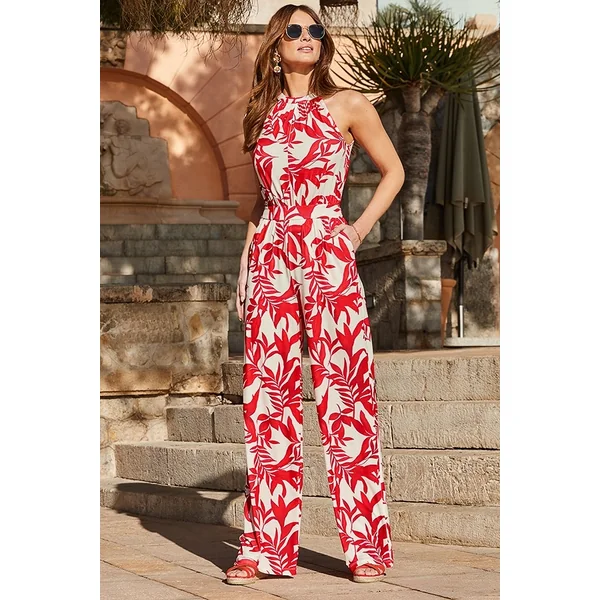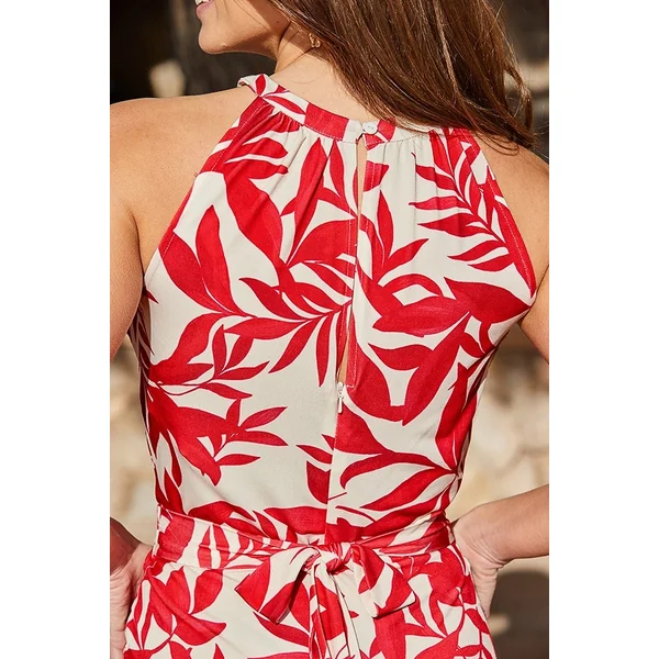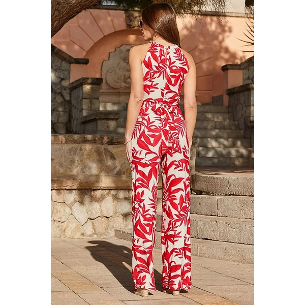 Be the first to review “Red Tropical Print Halter Neck Jumpsuit With Pockets”