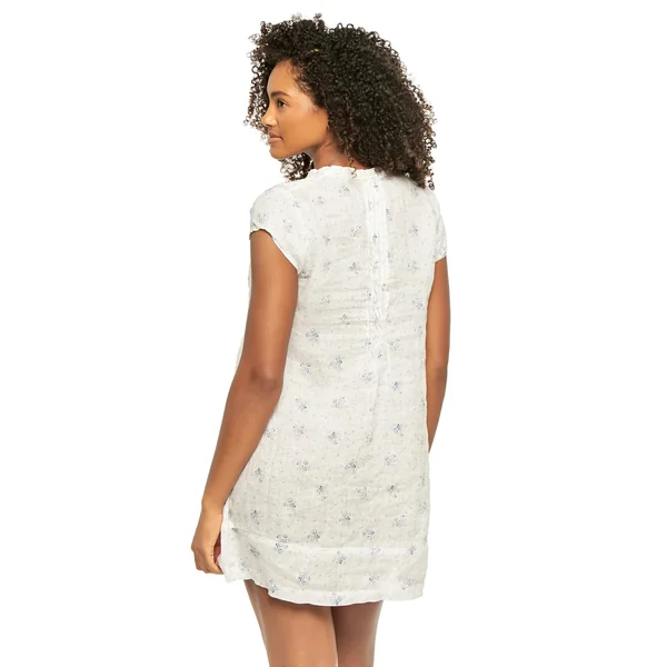 Regina tunic features ditsy floral print, cap sleeves, pleat details and a v-neckline.