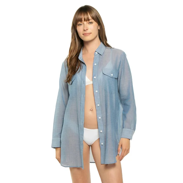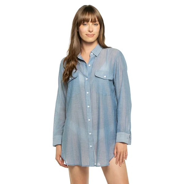 Shirt features a collared neckline with Tommy Bahama logo buttons, chest pockets and long sleeves.