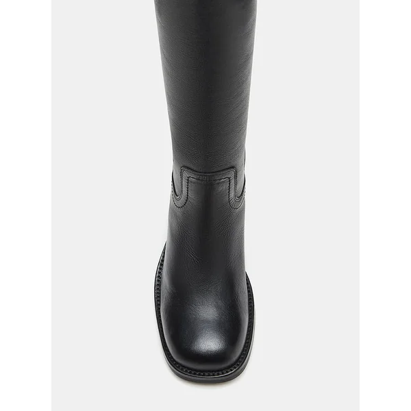 With its square-toe and sleek design, this just-under-the-knee boot is a must-have. This timeless boot provides both comfort and sophistication, making it the perfect addition to any outfit.